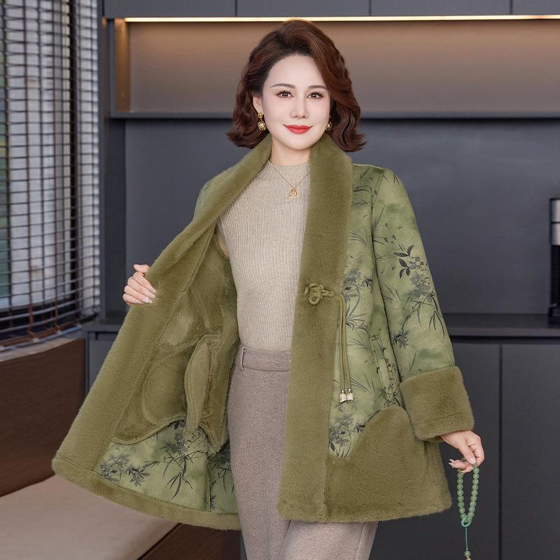 Wir stellen einen luxuriösen und stilvollen Mantel vor, der speziell für Frauen mittleren Alters und ältere Frauen entwickelt wurde.. Dieser mit Fleece gefütterte, verdickte Mantel verfügt über ein modisches Woll-Oberteil, gefertigt aus hochwertigem Kunstmink-Material, das sowohl Wärme als auch Eleganz bietet.. Der Stehkragen verleiht einen Hauch von Eleganz, während die langen Ärmel für Komfort und Schutz vor Kälte sorgen.. Dieser Mantel ist in Übergrößen erhältlich und perfekt für Frauen, die eine schicke und gemütliche Option für die Wintergarderobe suchen.