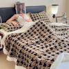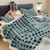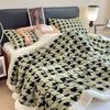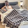Houndstooth Pattern Fleece Blanket Set with Pillowcase Double Layer Thick Warm Artificial Wool Blankets for Bed Sofa Fall Winter