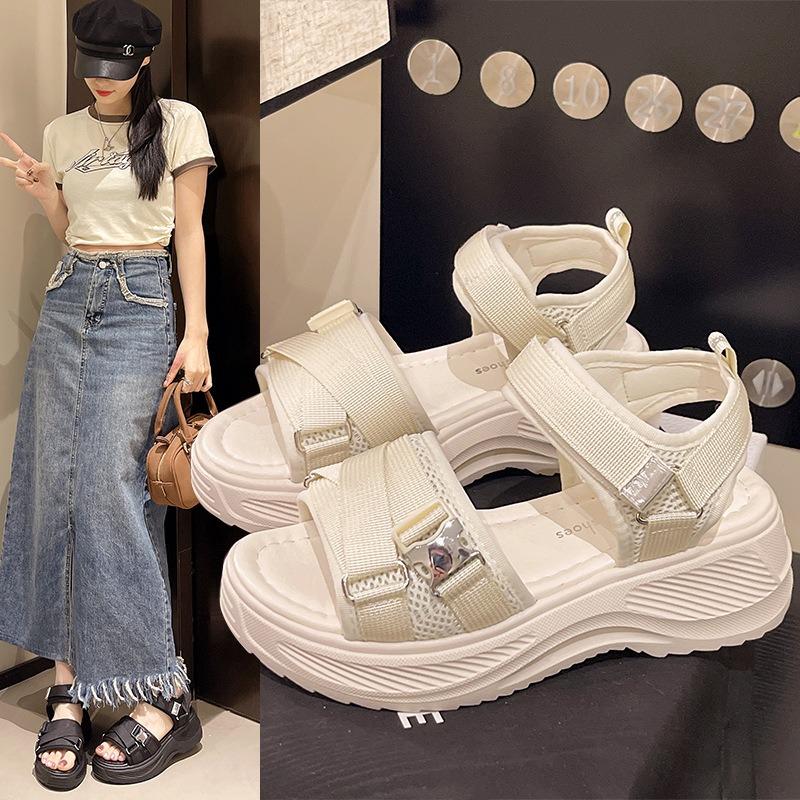 Daddy Sandalen Damen Oberbekleidung Sommer neu trendig mit geformten Aufklebern dicksohlige Muffin Sport Strand Schuhe Damen