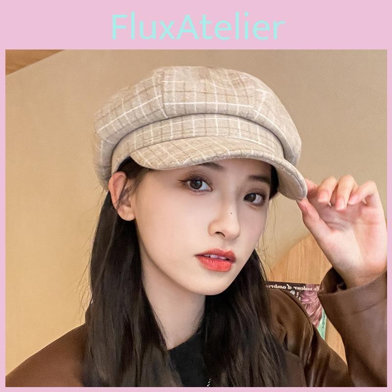 With Retro Beret Grid Printing Design Suitable For Daily Outdoor Dressing