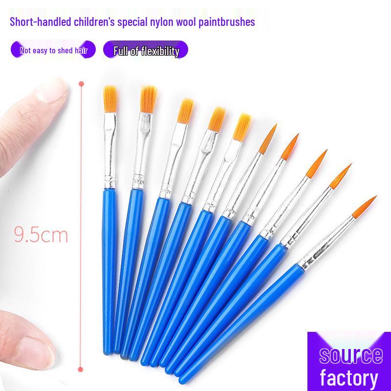 Kids' Flat Head Nylon Brush for Oil & Acrylic Painting: Short Handle, Pointed Tip