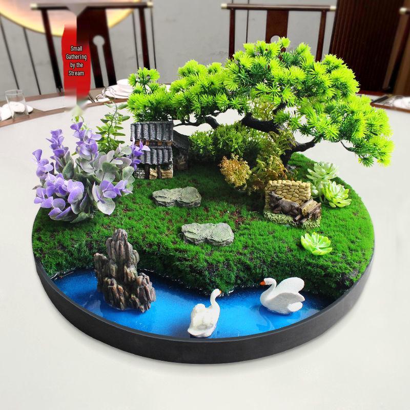 Best-Selling Moss Ornaments: Large Round Hotel Dining Table Centerpiece with Miniature Landscape Theme
