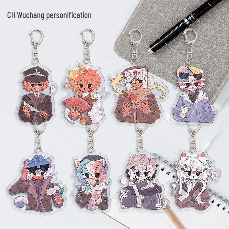 Countryhumans Keychains: Porcelain Neon Beauty - Korea, England, France Pendants for Student Backpacks