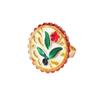 Künstlerischer, Nischen-, pastoraler und ethnischer Stil Legierung bedruckte Blume herzförmige Öffnung, großmäuliger Damenring