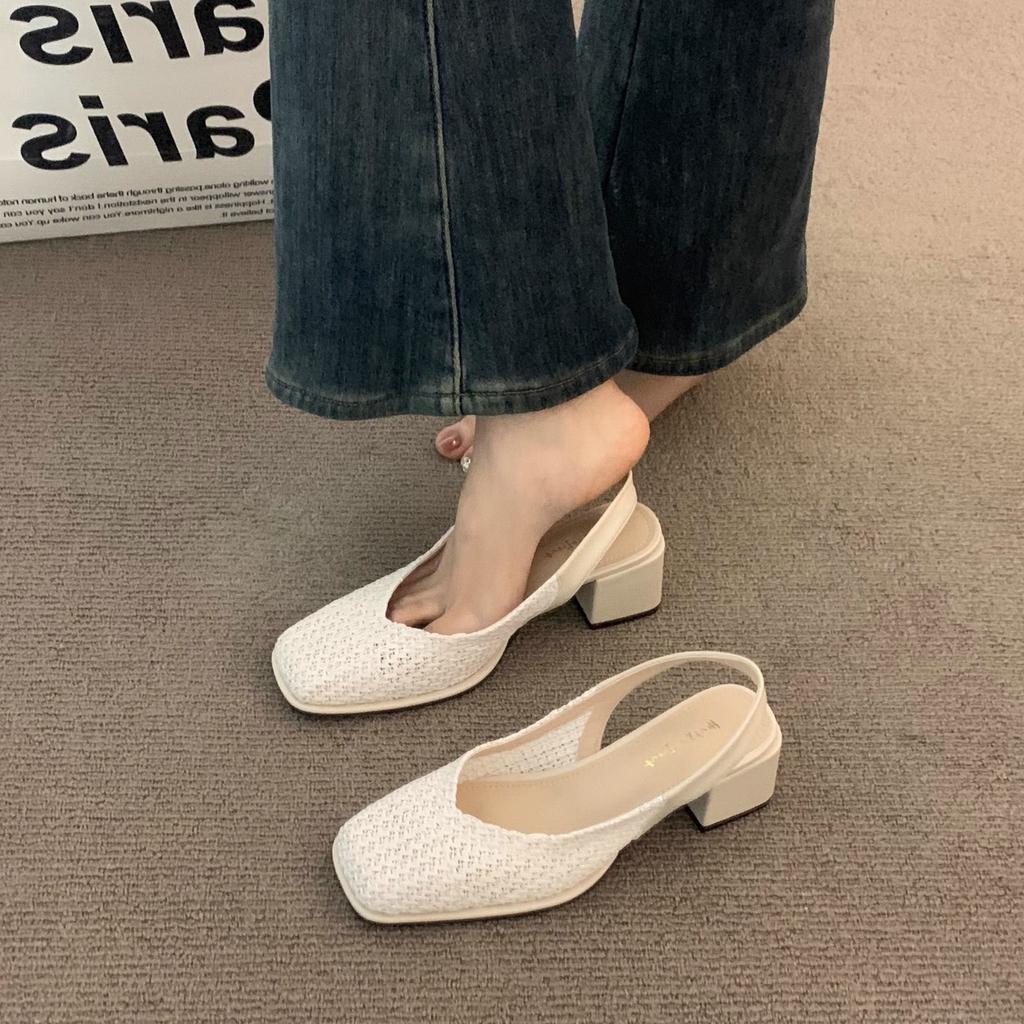 Spät Abendwind dicker Absatz Nische gewebte Bohème-Tasche Kopf Sandalen Feenschuhe 2025 Frühling und Sommer Urlaub leer einzelne Schuhe