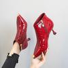 Europäische und amerikanische Stiefel mit dünnem Absatz, spitze dünne Stiefel 2025 Herbst und Winter neu, Kurzstiefel aus Lackleder, Damen-High Heels, vielseitiges Samt-w