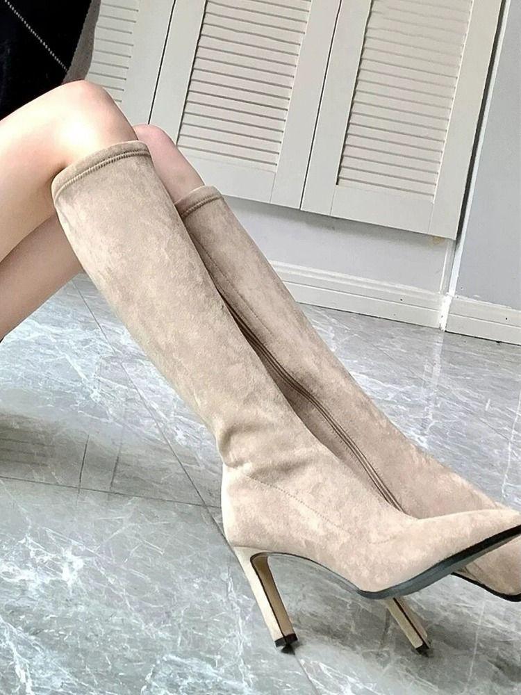 Damen High-Heel Stiefel 2025 Herbst und Winter Neue Hohe Röhren Elastische Dünne Stiefel Lange Stiefel Seitenreißverschluss Aber Knie Ritterstiefel