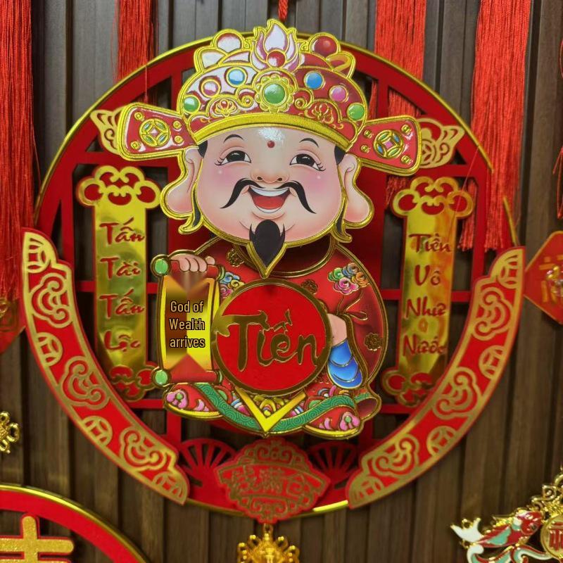 2026 Neujahrs Nickender Gott des Reichtums Figur mit Elektrischer Hängender Fu-Zeichen Dekoration für Wohnzimmer