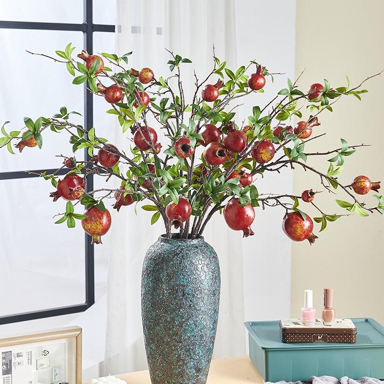 Pomegranate and Persimmon Artificial Flower Branch for Living Room or Dining Table Decoration