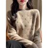 Damen Feine Wolle Verdickender Pullover Halboher Kragen Blatt mit Diamanten besetzt Pullover Damen Gestrickte Basisoberteile Herbst Winter