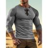 Herren Rundhals Einfarbig Knopf Langarm T-Shirt Lässig Sportliches Basis-Shirt Top