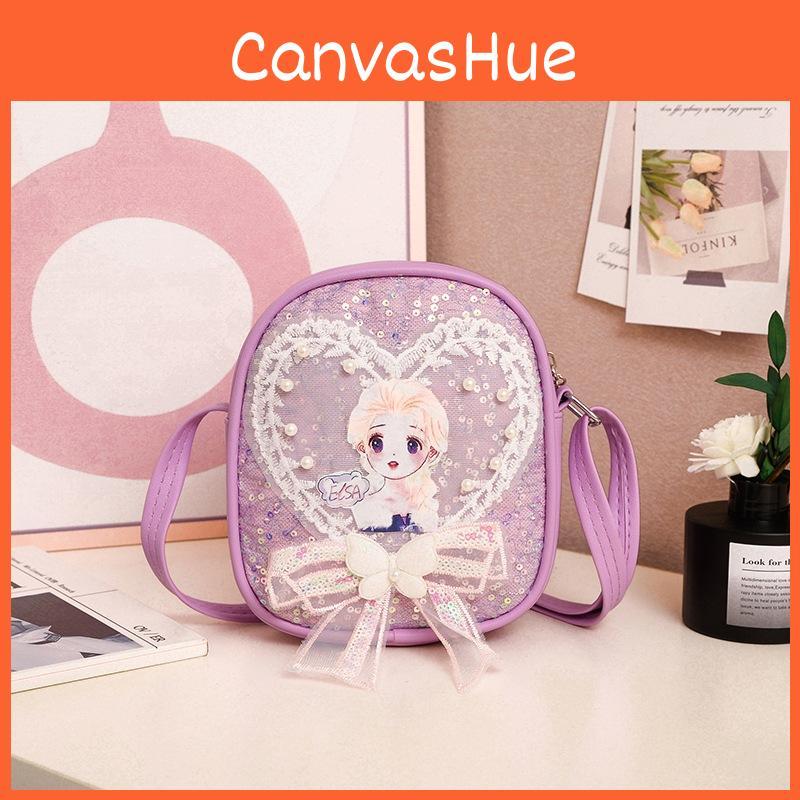 This children's shoulder bag features a lightweight PU material with a shimmering sequined exterior.Designed for girls aged 1-3 years, it offers durability and weight reduction for daily use. The bags charming character pattern and lace accents make it ideal for everyday outings and preschool activities. To maintain its appearance, wipe clean with a damp cloth regularly.