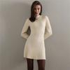 Langärmeliges Strickkleid mit hohem Kragen Frühling Casual A-Linie Kurzer Rock Europäisch Amerikanischer Stil Verspielt Modisch Damenkleid