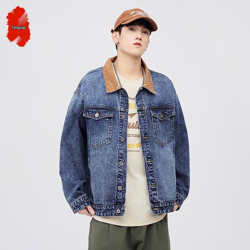 Men's American Retro Color Block Lined Denim Jacket