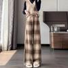 Samt Retro Wollplaid Weitbeinige Hosen für Damen mit Hoher Taille Schlank Lässig Gerade Trommel Bodenhosen