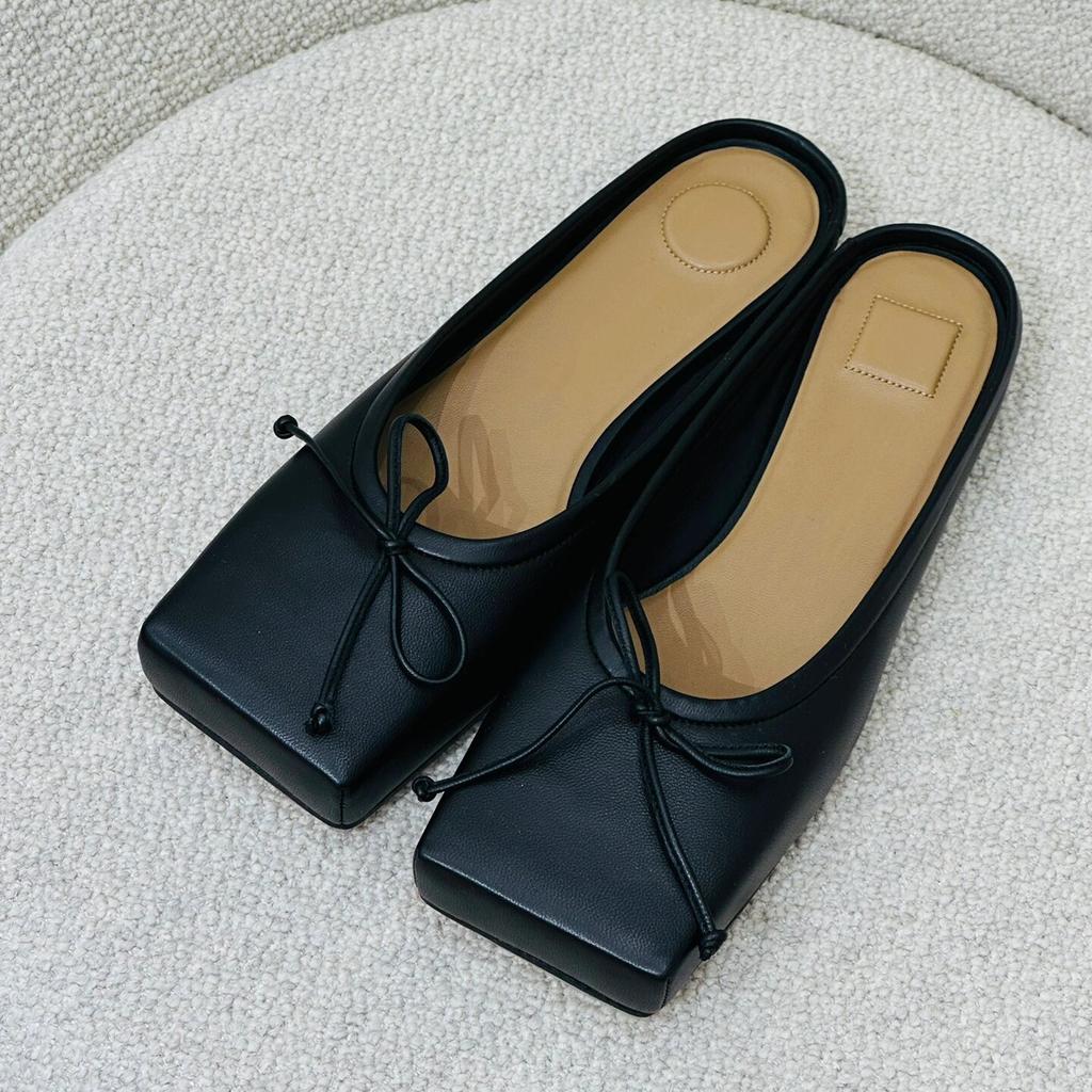Leder Nischendesign Schleife eckiger Kopf flacher Boden Taschenkopf Halbschuhe Damen Oberbekleidung Frühling und Sommer neue Sandalen Einzelne Schuhe