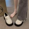 Plateau-Loafer Damen Metall Schnalle Herbst Neu Erhöhend Britischer Stil Einzelne Schuhe Dicker Absatz Ein Pedal Retro JK Kleine Lederschuhe