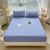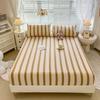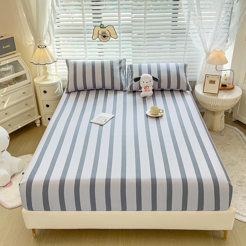 3pcs Grey Striped Cotton Fitted Sheet, Set Adult Kid Teen Bedroom Thickened Bedding with 2 Pillowcases, Geometric Line Bed Cover