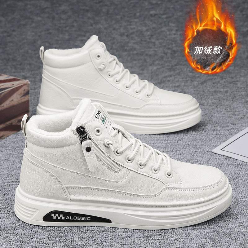 Herrenschuhe 2025 neue Winter Samt warm zwei Baumwollschuhe High-Top kleine weiße flache Schuhe lässige Herren Sport Trendschuhe
