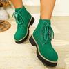 Damen Winter Stiefeletten mit dicker Sohle im britischen Stil, Plateau-Stiefel aus Wildlederimitat, Damengröße 43, Schnürstiefel, Motorradschuhe