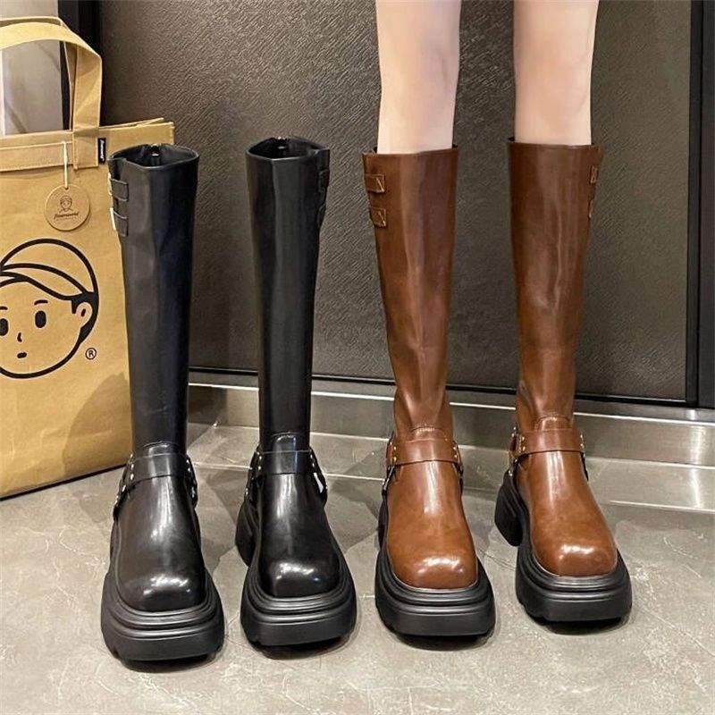 Dicker Absatz dicke Sohle Damenstiefel 2025 Herbst und Winter neue Modelle aber Knie zeigen Beine lang Ritterstiefel Internet-Berühmtheit tragen dünne Stiefel Tide