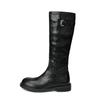 Neuer Spot 2025 Herbst und Winter gewaschenes Pferdeleder dicksohlige mittelhohe Schaft Ritterstiefel Seitenreißverschluss Gürtelschnalle hohe Stiefel lange Stiefel
