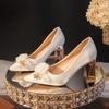 Champagnerfarbene Satin-High Heels Damen Hochzeitskleid Brautschuhe Chinesische Bühnenkleidung Hochzeitsschuhe dünner Absatz spitz zulaufende Einzelne Schuhe Brautschuhe