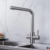 Chrome/brushed kitchen faucet, double handle, hot and cold drinking water, three-pass filtered purified water mixing faucet