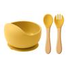 Color Kids Baby Silikon Fütterungsschüssel Set Lebensmittelqualität Geschirr Teller für Kinder Holzgriff Löffel Gabel Training Babysachen