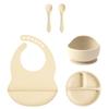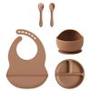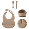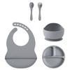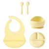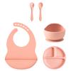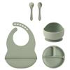 Color Kids 5-teiliges Silikon Baby Fütterungsset Saugteller Teller BPA-frei Saug-Schüssel Lätzchen Löffel Gabel Trainingsgeschirr Geschenkset