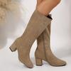 Vintage Dicke Ferse Damen Western High Boots Sexy Eckige Hohe Absätze Party Kleiderschuhe Herbst Winter Schlanke Lange Stiefeletten
