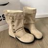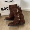 Winter Design Dicke Absätze Damen Mordern Schaftstiefel Mode Gürtelschnalle Slipper Damenschuhe Bankett Party Mid-Calf Stiefeletten