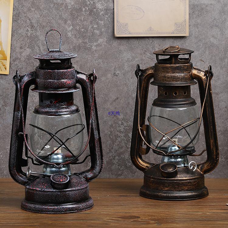 Vintage Wrought Iron Kerosene Camping Lantern - Nostalgic, Decorative Cafe Ornaments & Photo Props