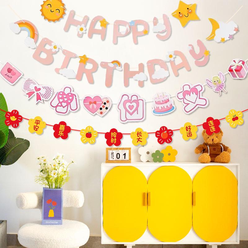 First Birthday Party Banner for Boys & Girls - Flag Bunting Decoration