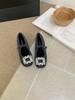 Herbst und Winter 2025 neue Temperament Mary Jane Schuhe Damen Samt Französische eckige Zehenpartie Strass Flusen Schuhe Innenhöhe erhöht Einzel