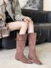 2025 Herbst und Winter neue europäische und amerikanische spitze Zehen dicker Absatz kurzer Absatz Temperament französische Mode sexy Wildleder Gürtelschnalle Stiefel
