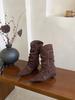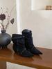 Herbst und Winter 2025 neue europäische und amerikanische Stil handgebundene Faden spitze dicker Absatz Wildleder Kurzstiefel dünne mittelhohe Stiefel