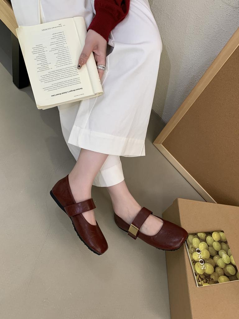 Französisch Retro Licht Mund Spät Abend Brise 2025 Frühling Neu Ein-Wort mit eckiger Spitze Weiche Sohle Koreanische Version Kleine Lederschuhe Damen