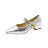Mode 2025 Retro-Stil Damen Pumps Lässig Schnalle Damen Niedriger Absatz Klassische Schuhe Metallische Dekoration Flacher Ausschnitt Einzelne Schuhe
