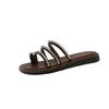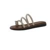 Mode Weichsohlige Hausschuhe Sommer Neu Runde Zehenpartie Glitzer Blume Zehensteg Feiner Riemen Rutschfest Verschleißfest Flache Schuhe