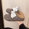 Modische Schleifen-Baotou-Slipper Herbst Neu Runde Zehenpartie Tiefer Ausschnitt Rutschfest Verschleißfest Flacher Boden Halber Mow