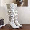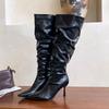 Mode Mode Plissee Party Modern Damen Kniehohe Stiefel Absätze Schuhe Spitze Zehenpartie Damen Lange Stiefel Weibliche Slipper Pumps