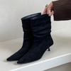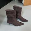 Mode Modeabsätze Schuhe Damen Knöchel Modern Stiefel Slipper Damenschuhe Spitzzehe Plissiert Damen Kurze Stiefel Schuhe Pumps