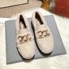 Mode 2025 Winter Lammwolle Slipper Damen Traf Kettenschuhe Shearling&Leder Patchwork Flats Schafsfell Mokassins Damen Barfußschuh