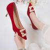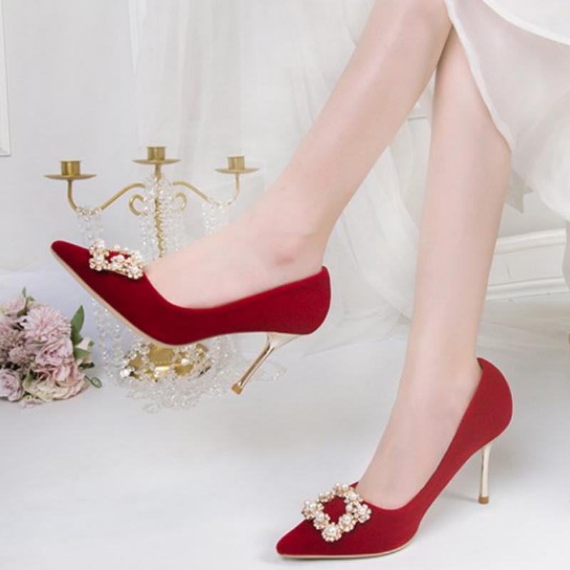 Mode Neuer Stil Spitzpumps Satin Vielseitig Sexy Französischer Stil Einzelne Schuhe Feiner Absatz Rot Hochzeitsschuhe für Frauen