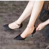 Mode Herbst Neue Spitzschuhe Damen Mittelhoher Absatz Flacher Ausschnitt Leere Perlenschnalle Absatzschuhe