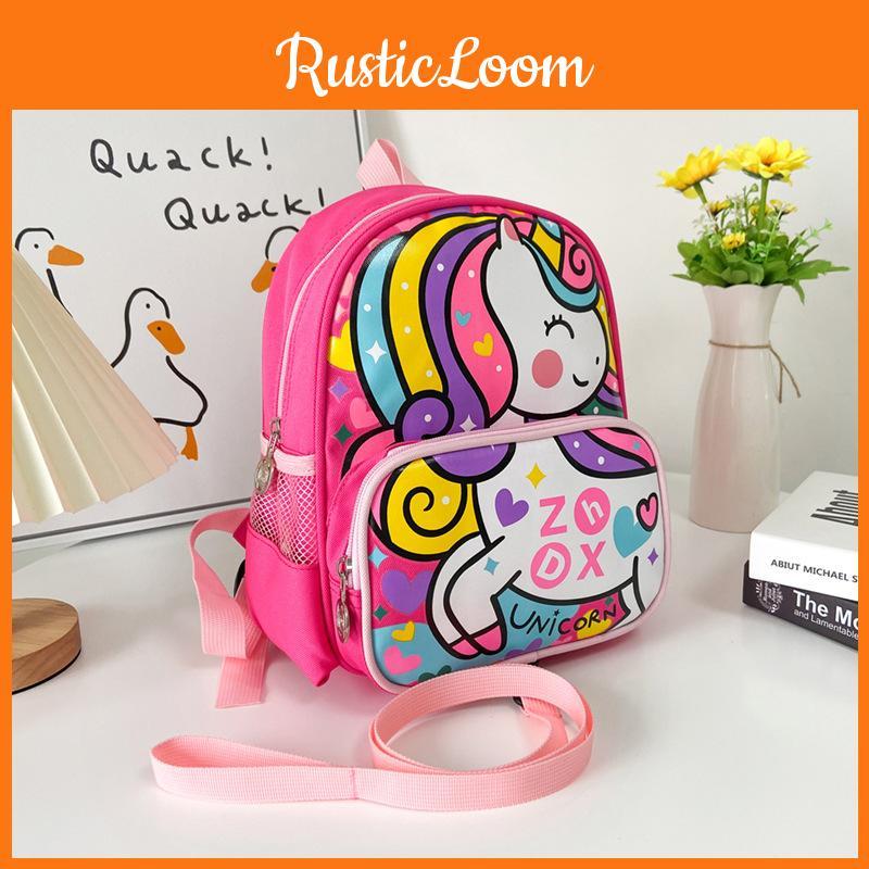 Kids School Canvas Backpack With Car And Unicorn Prints For Boys And Girls