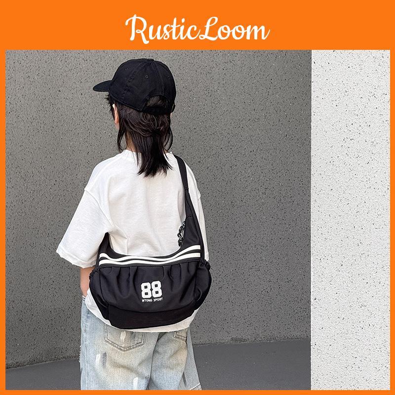 This versatile children's shoulder bag offers a spacious design that enables kids to carry daily essentials comfortably. Crafted from durable nylon with a polyester lining, providing ample room for belongings while remaining lightweight. Its simple, solid-color appearance features prominent topstitching, enhancing durability and style suitable for school or casual outings.