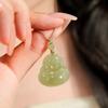 Natürliche afghanische Jade Maitreya Buddha Anhänger Halskette mit Pulloverkette und gewebtem Seil.