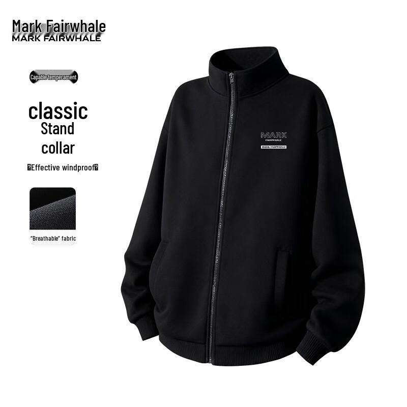 Mark Fairwhale Men's Stand Collar Loose Fit Sweatshirt Jacket